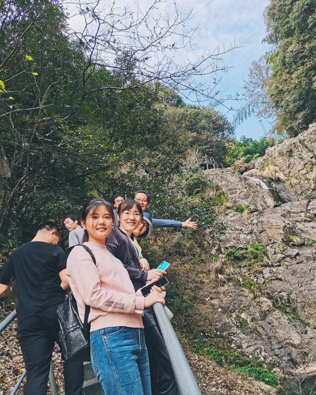 秋游活動第一站-四明山丹山赤水風景區(qū),是一處以峽谷景觀為依托,以道教文化、浙東古山村風情為文化內(nèi)涵,以絕壁、奇巖、古橋、流溪、飛瀑為特色的風景名勝區(qū),道家尊之為第九洞天。區(qū)內(nèi)群峰斗妍,古樹參天、竹木蔽日、溪水潺潺,是人們享受自然山水風光、沐浴歷史文化、品味山鄉(xiāng)風情、休閑娛樂度假的極佳生態(tài)旅游地。參加賞秋活動的員工相互照顧,相互交流,驚嘆大自然的鬼斧神工,感受秋日大自然的美景和呼吸著新鮮的空氣,心情格外愉快。